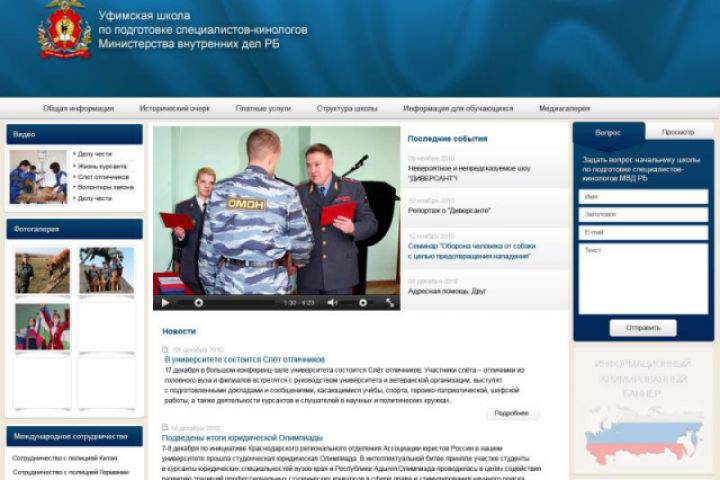 Создание корпоративного портала компании Уфимской Школы Кинологов. Вёрстка и программирование. Продвижение сайта в ТОП-10 Яндекса по запросу "школа кинологов".