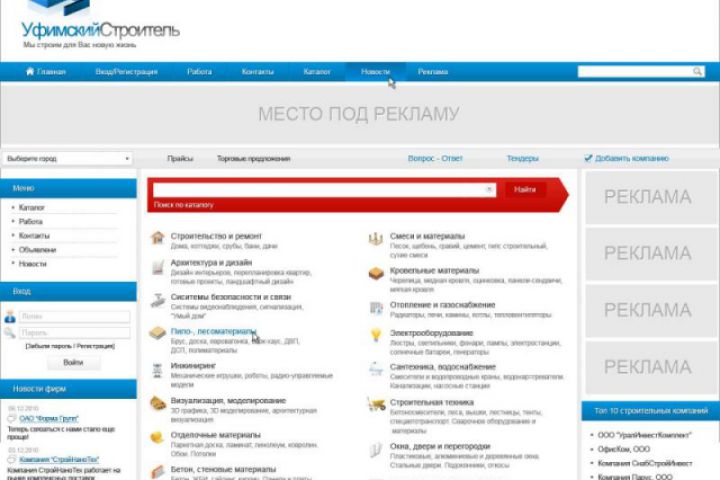 Создание корпоративного портала Уфимский Строитель. Вёрстка и программирование.