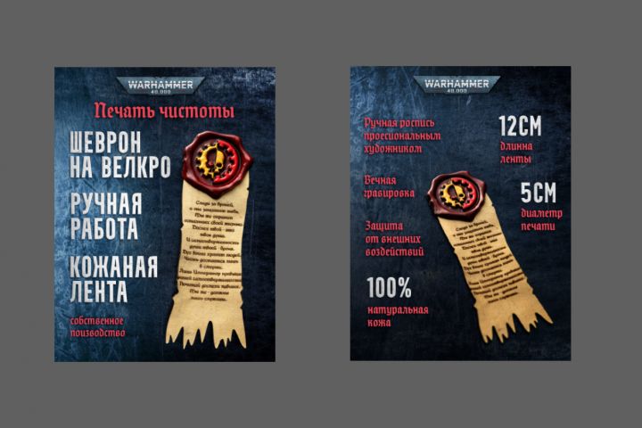 Разработан дизайн карточки товара для маркетплейсов, по мотивам вселенной warhammer 40k.