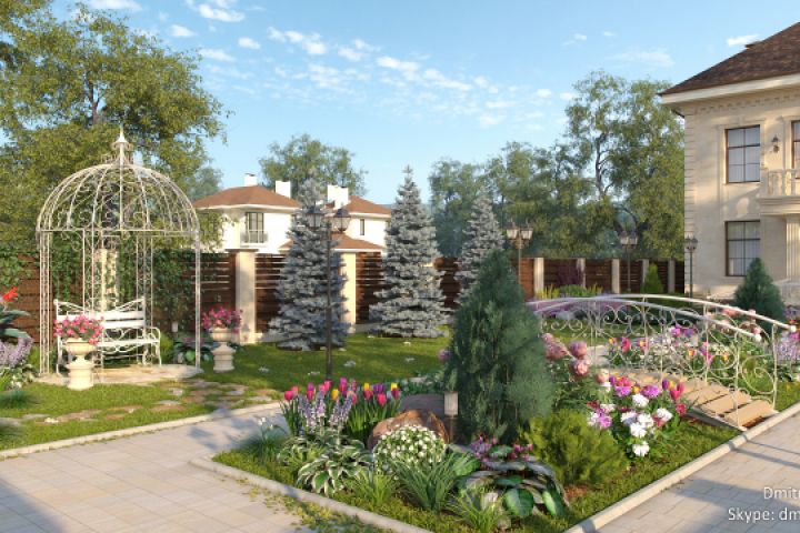 3d визуализация экстерьера дома + ландшафтный дизайн