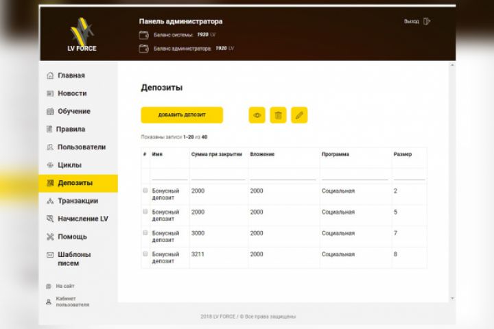 Десктопная верстка многостраничного личного кабинета для компании LV FORCE. Вёрстка кроссбраузерная и валидная. Отлично смотрится на любом типе десктопных устройств. Технологии: HTML5, CSS3, jQuery. Реализовано: табы.