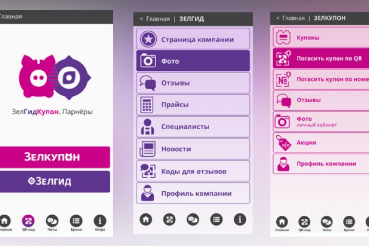 Верстка трёх страниц для мобильного приложения Zelkupon. Вёрстка адаптирована под экран мобильного телефона и планшета. Хорошо смотрится на любом типе мобильных устройств, в альбомной и портретной ориентациях. Технологии: HTML5, CSS3.