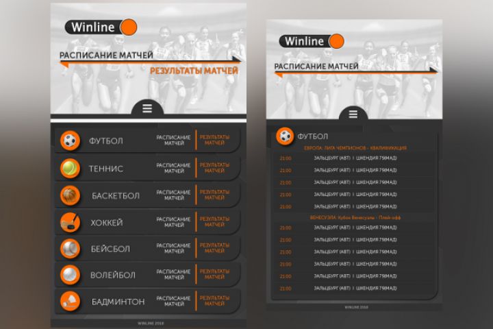 Разработка сайта о расписаниях и результатах матчей, под ключ (дизайн и вёрстка) для спортивного мобильного приложения.