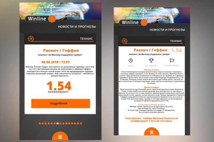 Разработка сайта WINLINE под ключ (дизайн и вёрстка) для спортивного мобильного приложения.