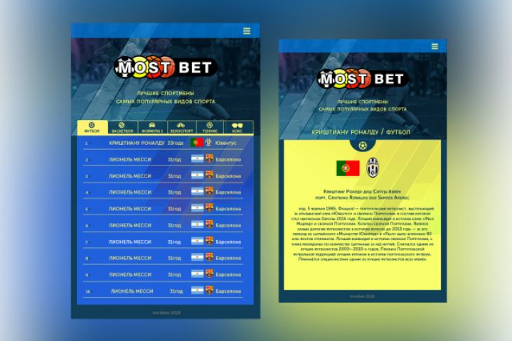 Разработка сайта MOSTBET под ключ (дизайн и вёрстка) для мобильного приложения.