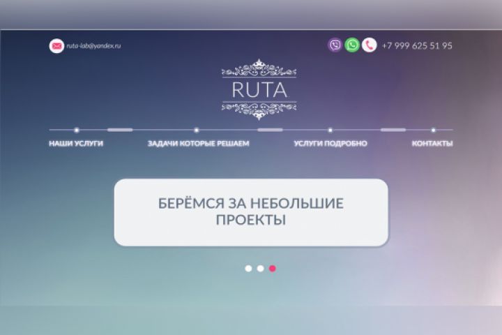 Вёрстка посадочной страницы для компании RUTA LAB.