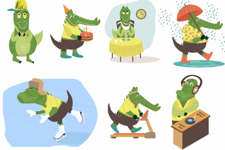 Персонаж выполнен в векторной графике, наполнен яркими цветами. Отражает множество эмоций.