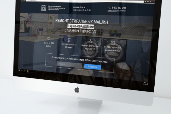 Разработка дизайна лендинга для сервисного центра по ремонту стиральных машин.