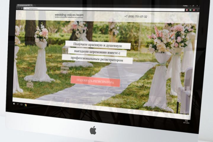 Создание дизайна для Landing page подбора свадебных регистраторов на конкурс.