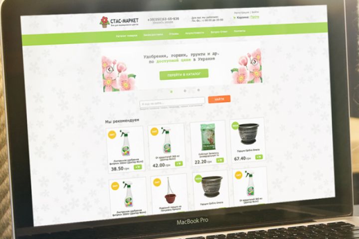 Разработка дизайна главной страницы и страниц товара, корзины для интернет-магазин удобрений для цветов, вазонов и горшков "Стас-маркет"
