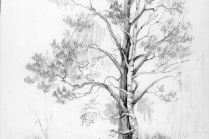 Два старых дерева, рисунок на пленэре, Вологодская область