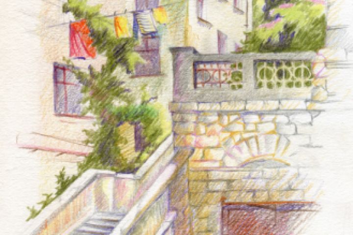 Старый двор в Севастополе. Рисунок выполнен на пленэре