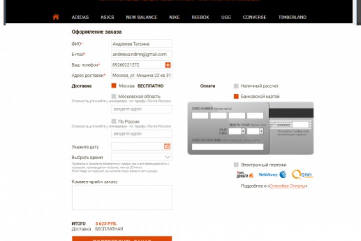Страница оплаты интернет-магазина manushop.ru. Работа выполнена в 2013 году.