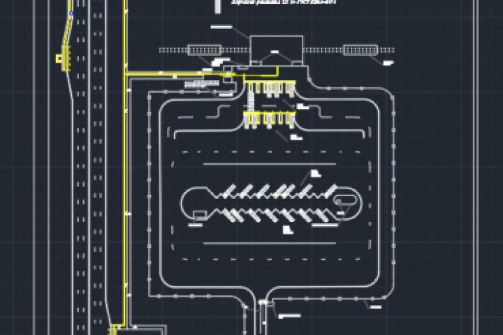 В данном чертеже изображена схема АТП автовокзала, с парковкой для легковых автомобилей, также для пешеходные тропы, тактильная плитка для инвалидов, посадачная площадка с пешеходными переходами и подъездами к ним, а также здание самого вокзала.
