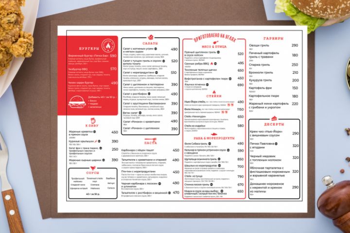Обновляла и дорабатывала меню для ресторана Печка Бар.