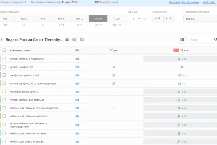 Проведена внутренняя оптимизация интернет магазина мебели в Санкт-Петербурге Общее время работ 3 недели. Результаты последнего апдейта яндекса на скрине.