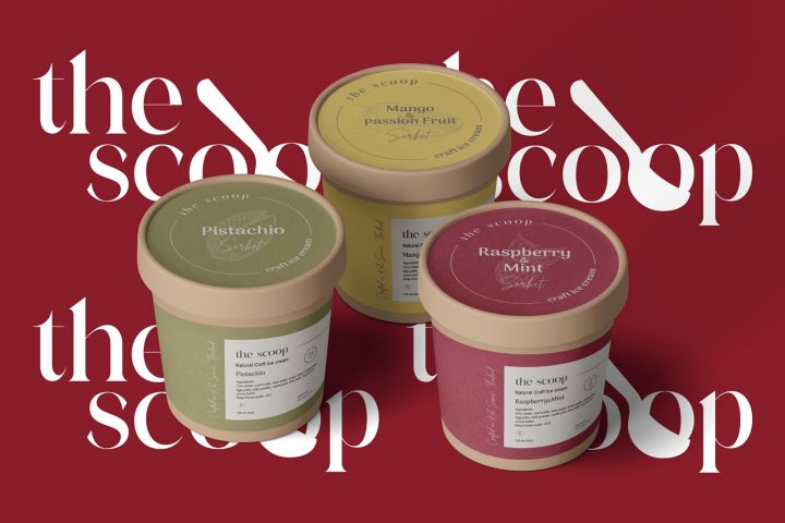 Логотип представляет из себя шрифтовую комбинацию с внедрением знака в общий конструкт, ложка мороженого (название бренда в переводе с англ. - ложка) как-бы поддерживает шарик мороженого. Дубляж буквы "о" было решено выделить именно таким образом.