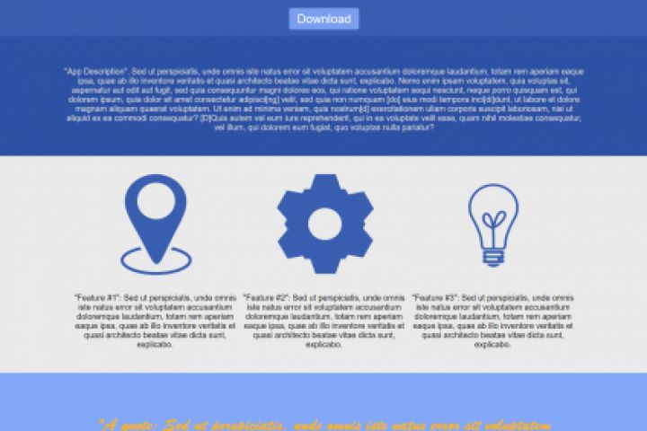 Макет страницы лендинга приложения с адаптивным дизайном. На чистом HTML5/CSS3. Верстка адаптирована для смартфонов, планшетов, ноутбуков, ПК и широких мониторов.