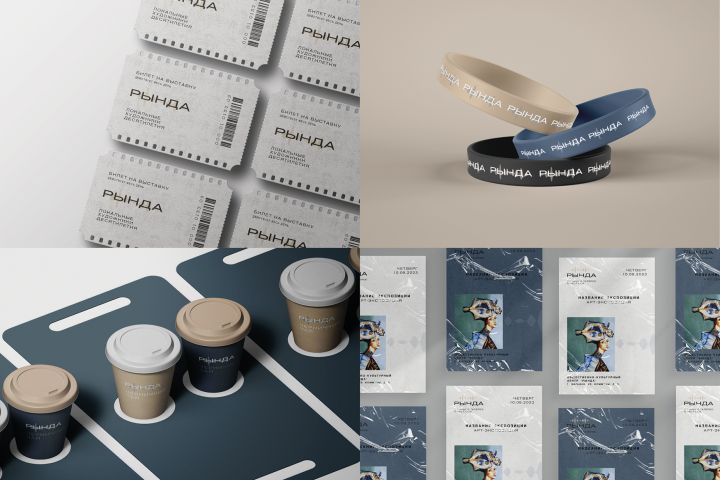 Айдентика разрабатывалась как гибкая система, которая одинаково работает и в пространстве выставок, и на носителях, от билетов и афиш до фирменной одежды и сувениров.