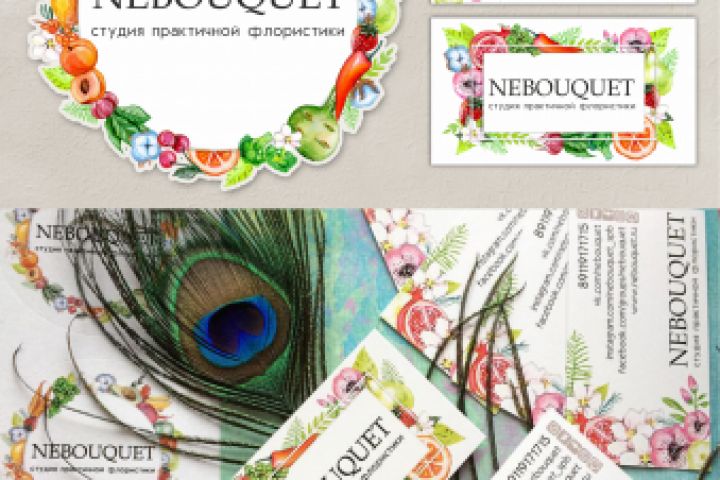 Разработала логотип для студии практичной флористики «Nebouquet» г.Санкт-Петербург. Для логотипа фрукты, овощи и цветы были отрисованы акварелью. потом