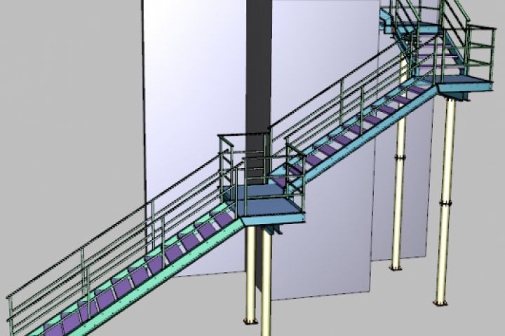 Лестница пожарная уличная, на второй этаж, с обходом внешних коммуникаций, расчеты, полное КД для производства и монтажа