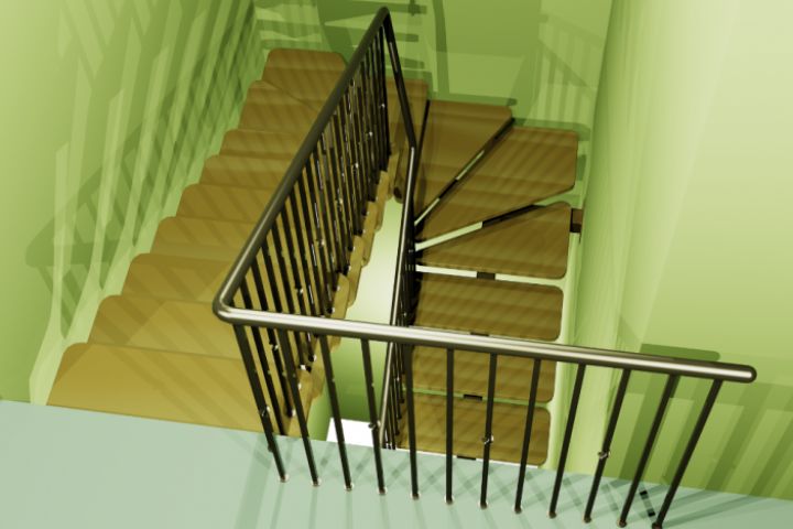 Лестница внутридомовая, сборная конструкция из крупных узлов на монокосоуре, расчеты, полное КД для изготовления и монтажа, раскрой ступеней