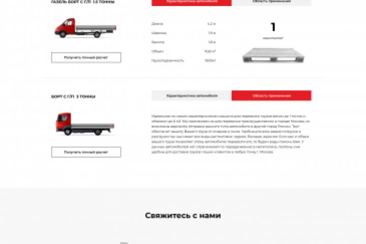 Одна из страниц корпоративного сайта. Компания "Имперкон" предоставляет пользователям услуги грузоперевозок.