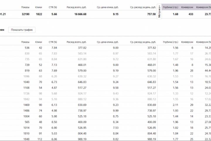 Отобразил статистику по настройке рекламы, очень хорошие показатели.