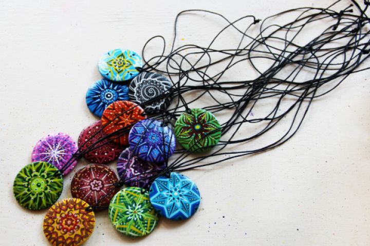 кулон-оберег ручной работы из дерева с росписью красками и покрытием
