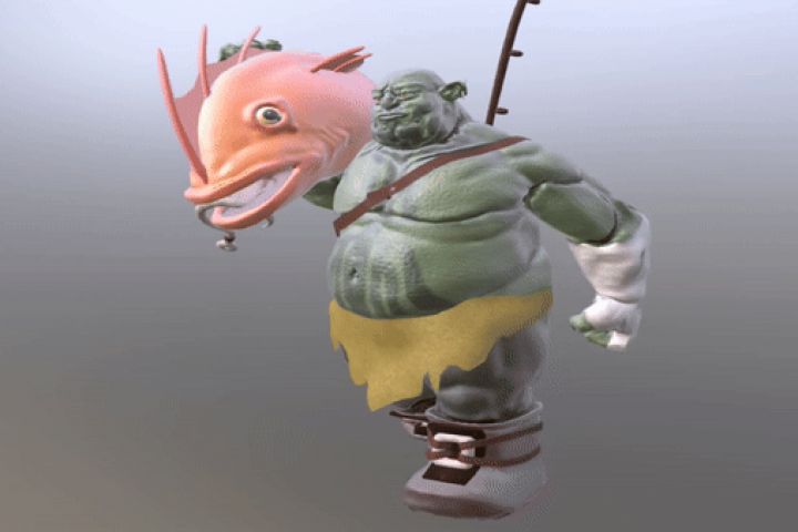 Тролль оптимизированный для игр по концепт арту. Риг для 3D модели и анимация походки.