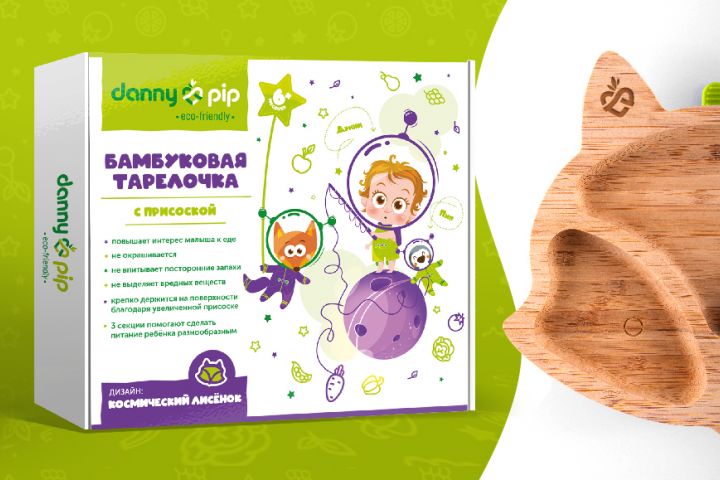 Иллюстрации и дизайн упаковки для детской бамбуковой тарелочки