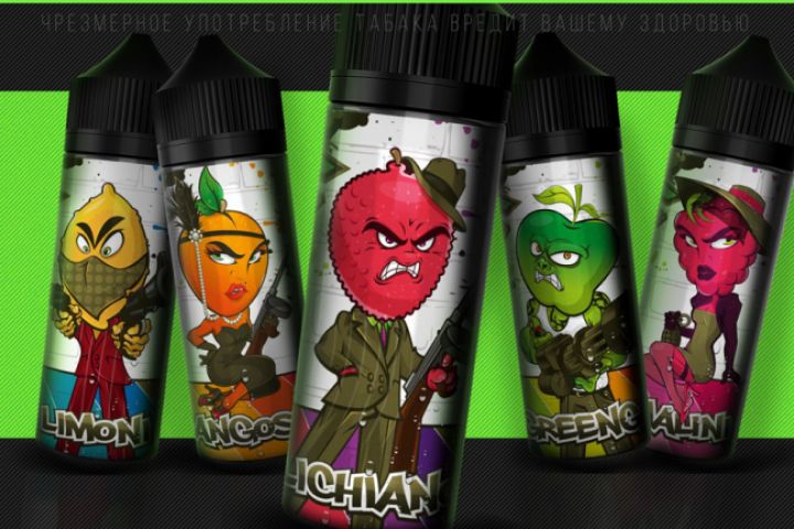 Серия. Персонажи (фрукты/вкусы) и упаковка. Жидкость для парения
