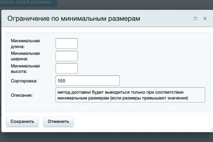Добавили 2 новых типа ограничений – по минимальному размеру и по минимальным размерам. Первый фильтр отображает службу, если хотя бы один параметр размера (длина, ширина или высота) превышает установленные лимиты, второе ограничение срабатывает для всех трех обозначенных параметров в целом.