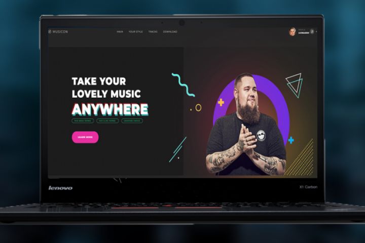 Musicon Дизайн - легкий. Верстка - адаптивная под все разрешения. Технологии: HTML, CSS,Javascript,JQuery