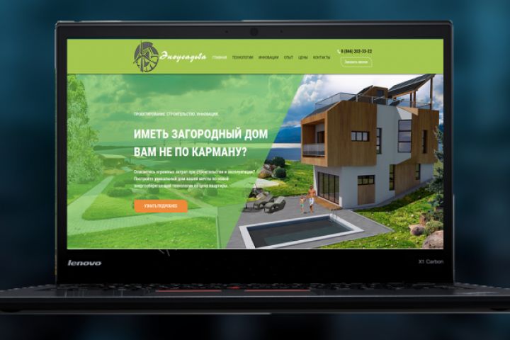 Сайт - экоусадьба ПРОЕКТИРОВАНИЕ. СТРОИТЕЛЬСТВО. ИННОВАЦИИ. Технологии: HTML5,CSS3,JS,Jquery,PHP Интеграция на WordPress