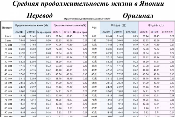 Перевод таблицы продолжительности жизни.