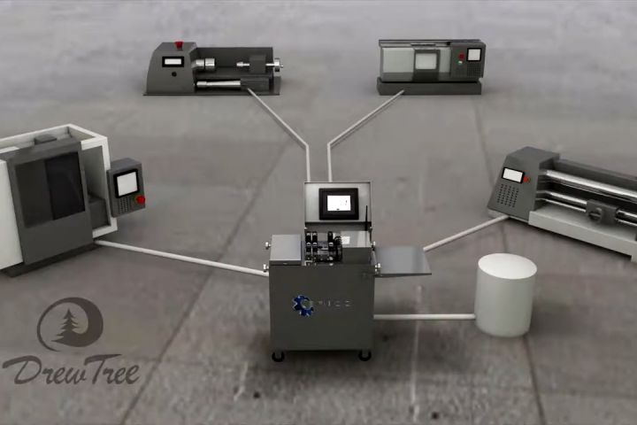 Создать 3D-анимацию процесса смешивания компонентов на станции приготовления смазочно-охлаждающих жидкостей, демонстрирующую взаимодействие оборудования, подачу ингредиентов, процесс перемешивания и распределение готовой смеси. Показать основные этапы технологического цикла и работу механизмов в динамике.