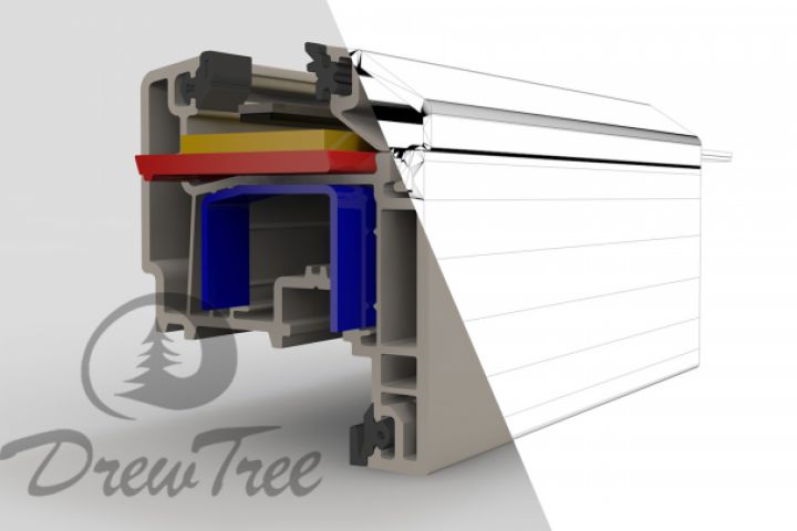 Создать фотореалистичное изображение поперечного разреза оконного профиля, наглядно показывающее внутреннюю структуру окна.Цель — получение качественного маркетингового материала для эффективного продвижения продукции производителей окон и строительных фирм.