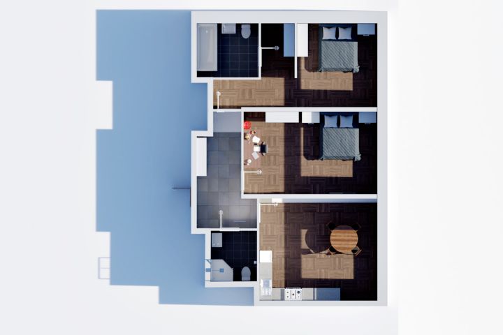 Используя готовые ассеты и инструменты Twinmotion, а также имеющийся план помещения, была создана виртуальная модель квартиры с последующим выполнением фотореалистичной визуализации интерьера и рендеринга.