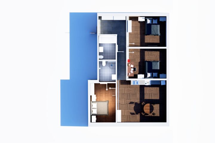 На основе готового плана помещения и специализированных инструментов Twinmotion были разработаны качественные ассеты, позволившие смоделировать интерьер квартиры и провести высокоточную фотореалистичную визуализацию пространства вместе с финальным рендерингом изображений.