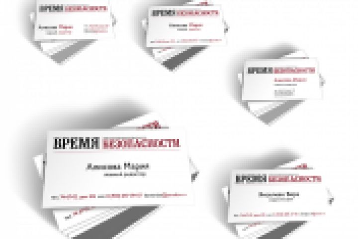 сотрудникам редакции газеты «Время безопасности» были необходимы визитки для налаживания деловых связей. требования — в меру современно, в меру классично, в фирменном стиле самой газеты. получатель визитки должен был сразу видеть название нового для города издания, иметь возможность понять, о чём издание и связаться с контактным лицом.