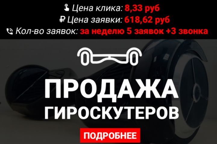 Регион: Россия Яндекс Директ -Ср. цена клика: 8,33 руб - Кол-во заявок(звонков): за неделю 5 заявок +3 звонка - Цена заявки с учетом звонков: 618,62 руб