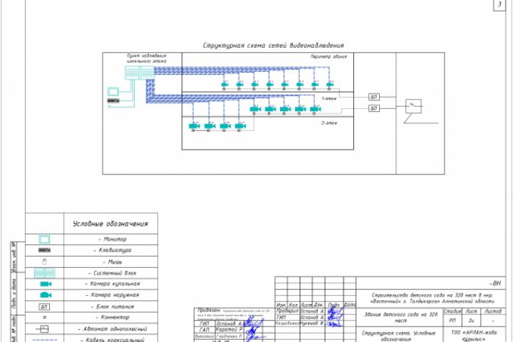 Проект видеонаблюдения детского сада на 320 мест выполнен согласно задания на проектирование и требований нормативных документов. Проект прошел государственную экспертизу с положительной оценкой.