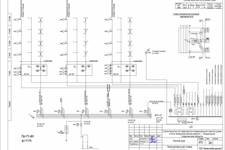 Проект электроснабжения 55 квартирного жилого дома, выполнен согласно требований технических условий, действующих на тот момент нормативных документов и требований ГОСТ. В проекте выполнены листы - общих данных, принципиальной схемы распределительной сети, планов осветительной и розеточной сетей, планов распределительных сетей и молниезащиты. В проекте также выполнена система уравнения потенциалов и молниезащита. На данный момент проект прошел Государственную экспертизу, объект построен и введен в эксплуатацию.