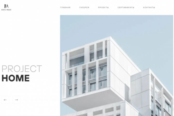 Вёрстка главной страницы агентства по проектированию сооружений Digital Project, работа выполнена для портфолио.
