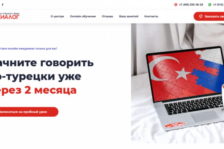 Вёрстка главной страницы интернет-школы турецкого языка "Диалог", работа выполнена для портфолио.