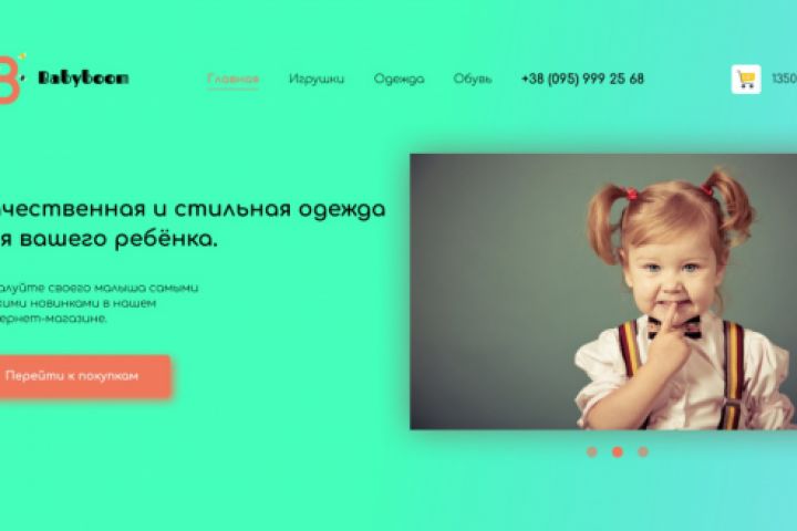 Дизайн главной страницы интернет-магазина детской одежды, сделан для портфолио в Figma.
