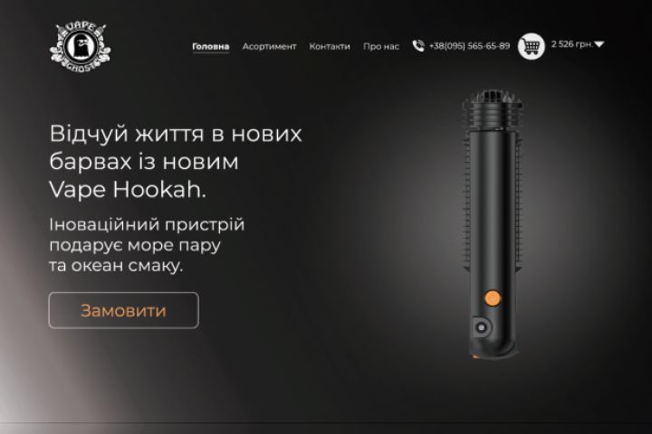 Дизайн первой страницы интернет Vape Shop, сделан для портфолио в Figma.