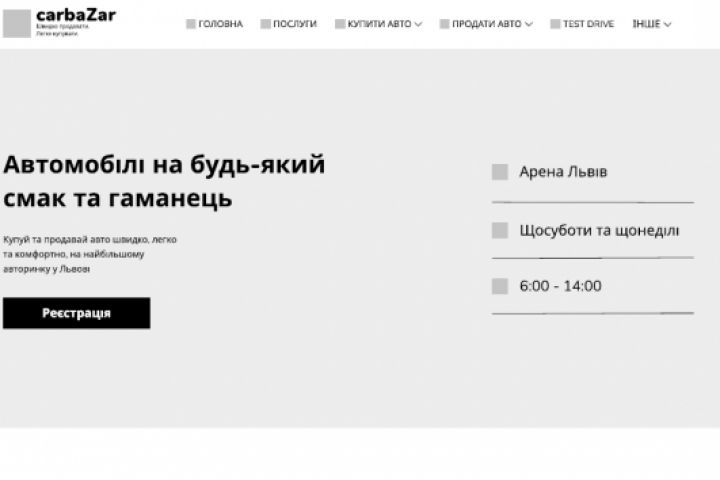 Прототип сайта для авторынка, сделан для портфолио в Figma.