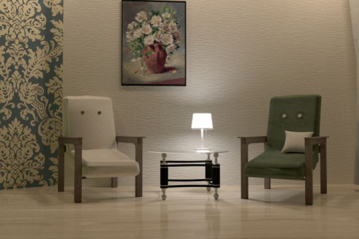Кресла со столом и светильником.
